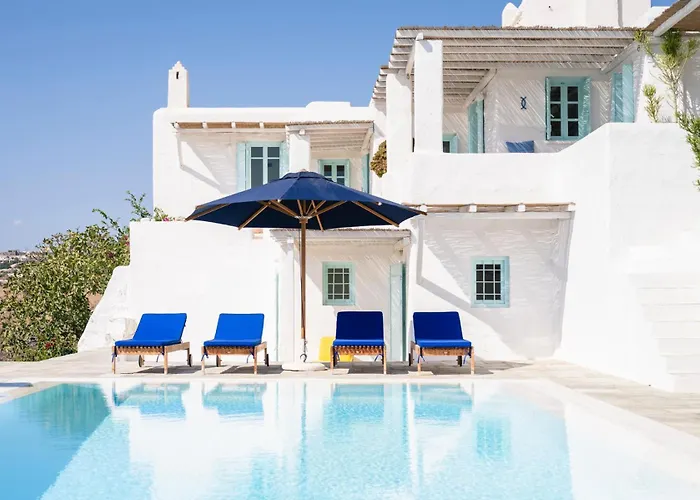 Die 6-Zimmer- Villa Papyrella - Mg Villas Mykonos Town liegt in einer Entfernung von 2 km vom Landwirtschaftsmuseum und verfügt über eine Terrasse mit Blick aufs Meer. Die Villa bietet einen privaten Swimmingpool und liegt 10 Minuten mit dem Auto vom Strand von Ftelia entfernt.